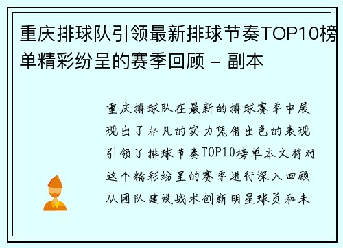 阅读上海排球队作为中国排球界的一颗璀璨明珠,在辉煌的征程中不断追逐着大满贯的梦想。自成立以来,队伍凭借卓越的技战术、顽强的拼搏精神以及团队协作能力,屡次在国内外赛事中取得优异成绩。本文将从历史渊源、发展历程、现状分析和未来展望四个方面详细探讨上海排球队的辉煌征程与大满贯梦想的追逐之路,以期全面呈现这支队...