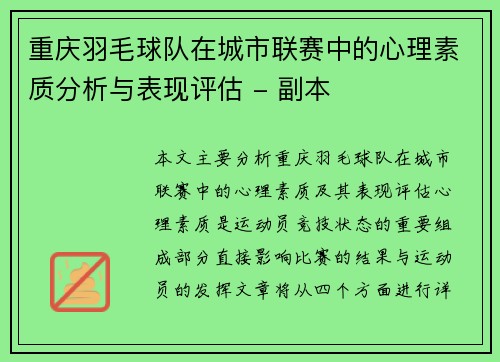 近期,上海羽毛球队在全国比赛中的表现引发了广泛的关注与讨论。球迷们热烈地表达了对球队实力和战术的看法,而专家们则从技术分析和心理素质等多方面进行了深入剖析。在这场关于“比赛经验”的热议中,各方观点交锋,既有对球队未来发展的期待,也有对其现状的批评与反思。通过总结球迷与专家的意见,我们将更好地理解上海...