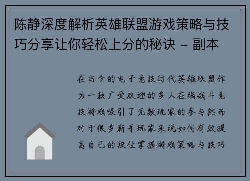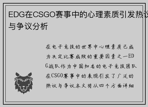 阅读近年来,电子竞技逐渐成为全球范围内备受瞩目的领域,其中《反恐精英:全球攻势》(CS:GO)更是吸引了大量的职业战队和玩家。JDG战队作为中国电竞圈中的一支重要力量,在CS:GO赛场上的表现不仅展现了高超的技术水平,更在战术创新与经验变革方面引发了广泛讨论。本文将从四个角度深入分析JDG在CS:GO赛...